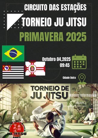 Participe de mais uma ciclo do Circuito das Estações - Torneio de Primavera de Ju Jitsu 2025, promovido pela Associação Paulista Kobudo. Um evento que reúne diversos atletas, com o objetivo de promover a modalidade e descobrir novos talentos, colocar em prática o que aprendeu com seu professor. Será 27/09 ou 04/10/2025