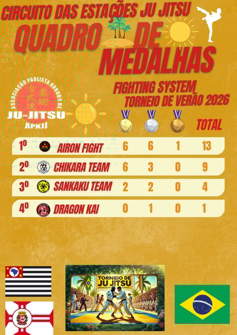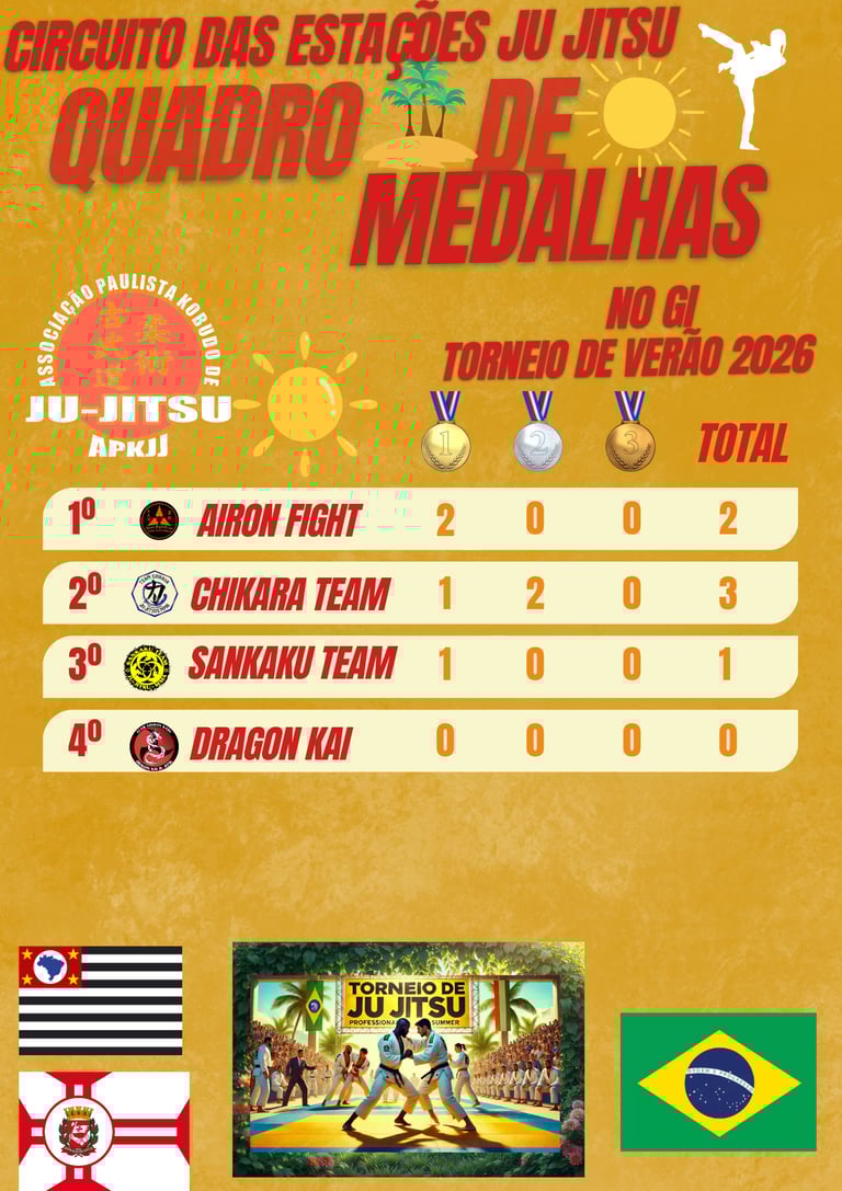 Acompanhe o desempenho dos atletas e descubra quem se destaca nos Torneios de Ju Jitsu.