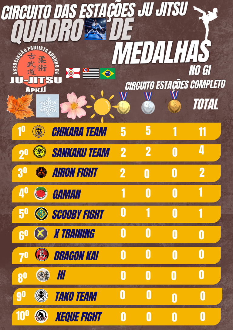 Ranking Geral do Circuito das Estações Ju Jitsu